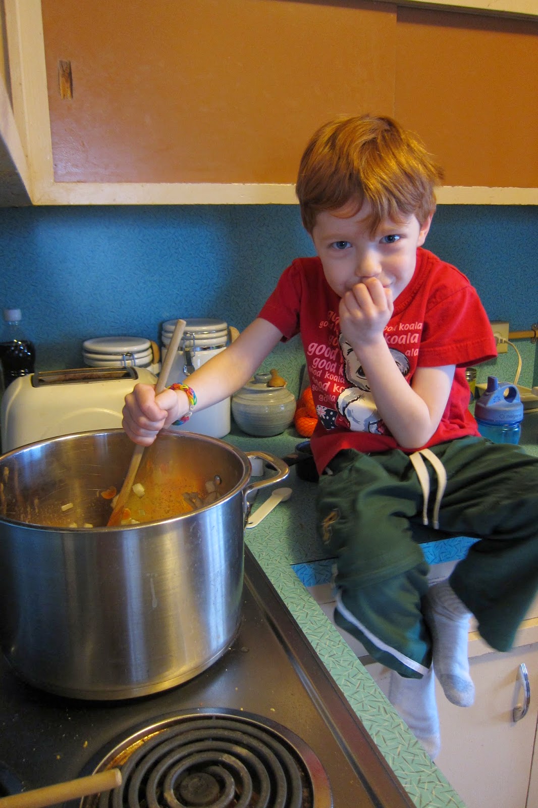 If I keep having the boys help in the kitchen eventually they will be so capable I can just pass the cooking of meals on to them right? Isn't that why we have kids? So they can do the chores we dislike? :) Kidding. Only kidding.